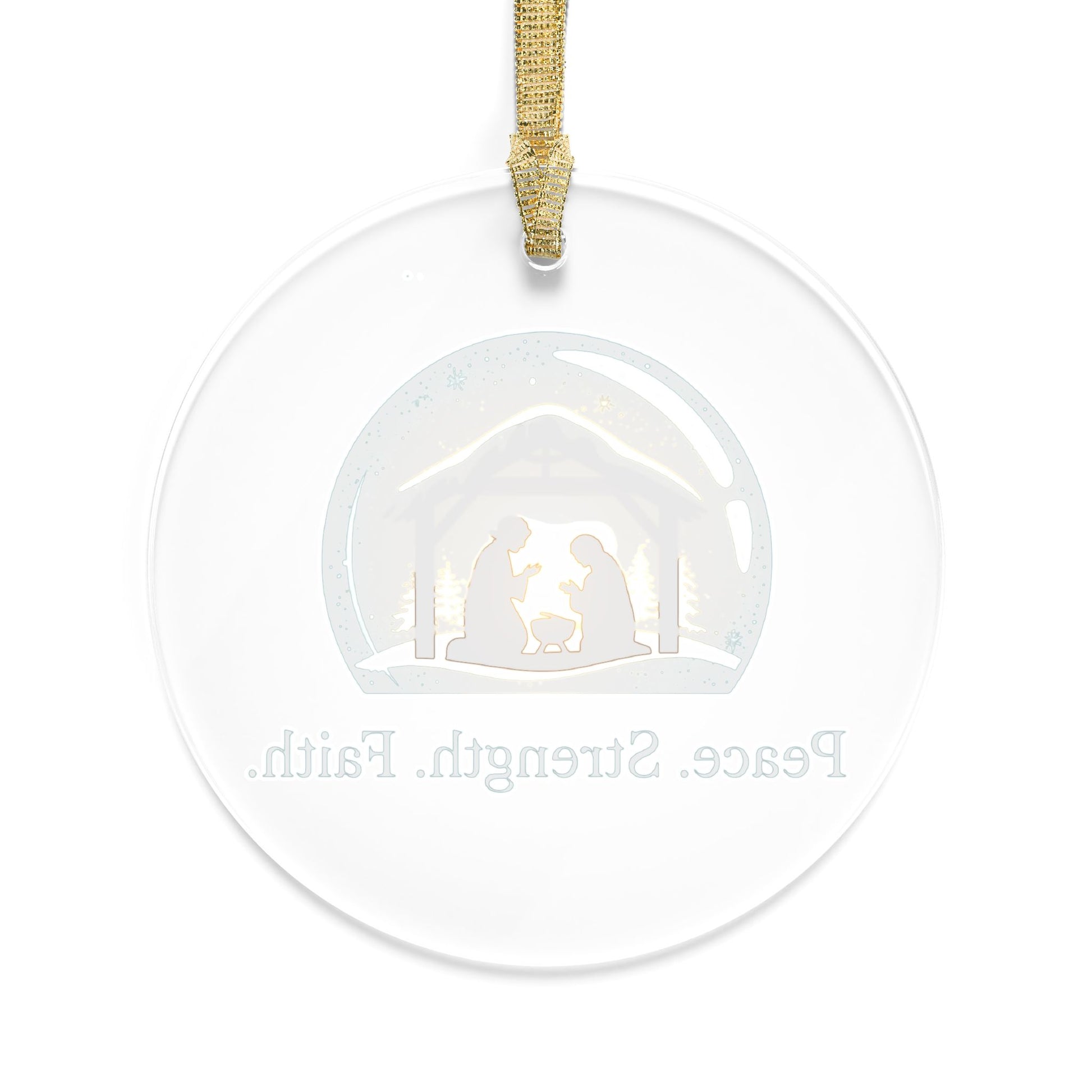 Nativity Ornament – Peace Strength Faith Christmas Decoration, Christian Acrylic Tree Ornament, Holy Family Holiday Keepsake