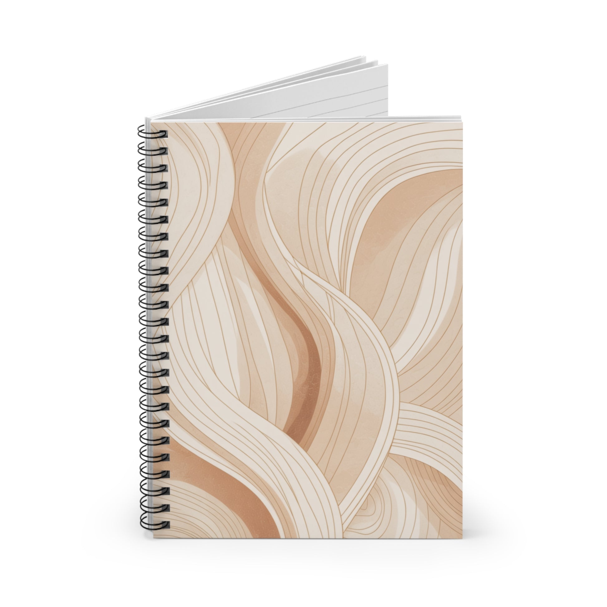 Stay organized in style with this neutral abstract spiral notebook, featuring soft flowing beige tones and a clean minimalist aesthetic. This ruled-line notebook is perfect for students, teachers, office use, journaling, planning, and daily to-do lists. Lightweight, durable, and modern, it makes a thoughtful gift for writers, professionals, and anyone who loves simple, calming stationery.